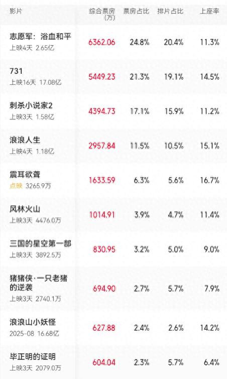 剩下的国庆档新片,从排片占比到票房占比全部输给《731》,特效精良、创作诚意满满的《刺杀小说家2》上映3天票房仅1.56亿,预测最终票房低于五亿,想回本有点难。